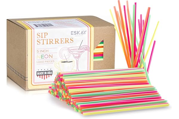5-Inch Cocktail Straws and Stir Sticks for Coffee Bar and Restaurants, Made in USA (Neon)