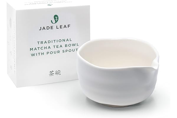 Traditional Matcha Tea Bowl with Pour Spout - Hand Made Porcelain with White Matte Glaze - 18oz For Perfectly Whisked Matcha Green Tea Powder