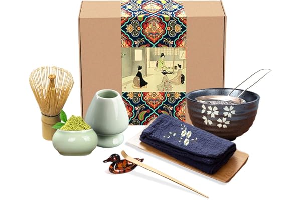 TEANAGOO Matcha Tea Set Japanese Tea Set Matcha Bowl Matcha Bamboo Whisk Scoop Sifter Matcha Whisk Holder Matcha whisk stand Matcha whisk set O5Matcha Green Tea Powder Kit