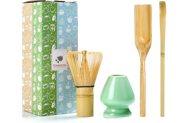 Matcha Whisk (Chasen), Traditional Scoop (Chashaku), Tea Spoon, Whisk Holder, The Perfect Set to Prepare a Traditional Cup of Matcha.