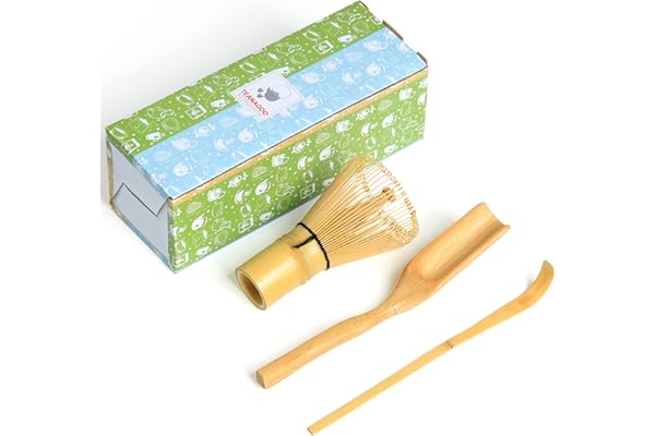 Matcha Whisk (Chasen), Traditional Scoop (Chashaku), Tea Spoon. The Perfect Set to Prepare a Traditional Cup of Japanese Matcha Tea, Handmade from 100% Natural Bamboo