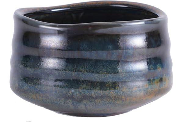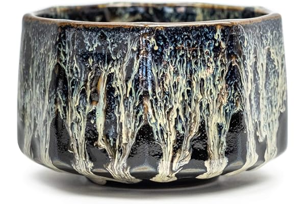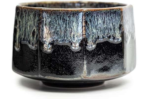 Multicolor Black Ceramic Ceremonial Matcha Bowl | Handcrafted, Large Macha Drinking Glass | Authentic Mug Shape