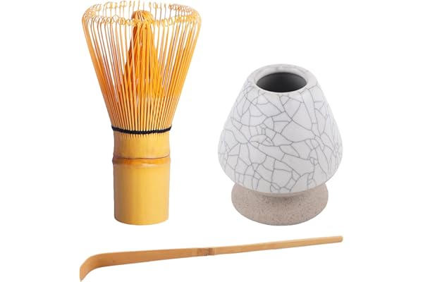 Matcha Whisk (Chasen), Traditional Scoop (Chashaku), Tea Spoon, Whisk Holder, The Perfect Set to Prepare a Traditional Cup of Matcha.