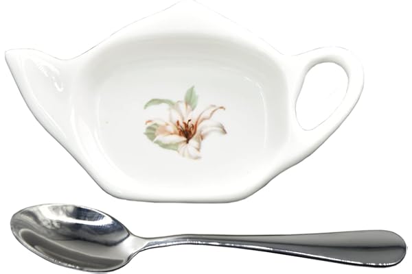 Ceramic Tea Bag Holder Teapot Shaped Teabag Coaster Tray Spoon Rest Set 4.5 inches