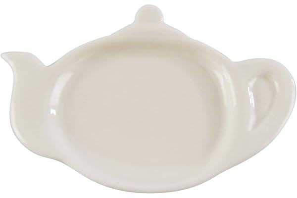 Teapot Coaster for Tea Bag, Cute Spoon Rest, 5" L x 3" W x ½" H, White