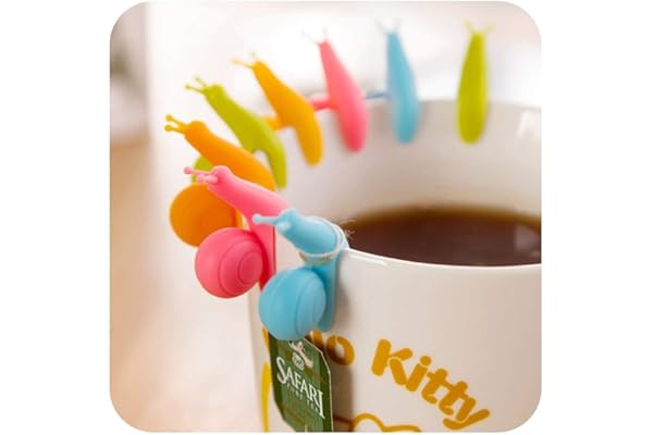 NaSh-Design 10 Pieces Cute Snail Shape Silicone Tea Bag Holder (Candy Colors)