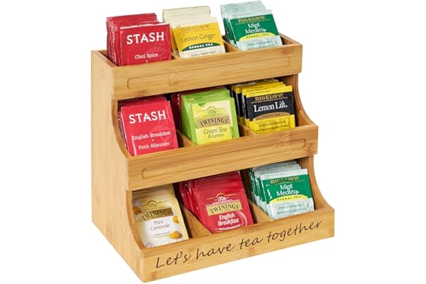 NHZ Tea Bag Holder Bamboo 3 Tier, Tea Holder for Tea Bags Organizer Over 180 Tea Bags