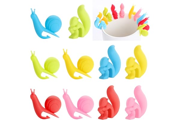 ALIOAOBEI 10 Pcs Tea Bag Holder Silicone Cute Snail Squirrel Tea Bag Coasters for Bar Cup Mug Drink Markers