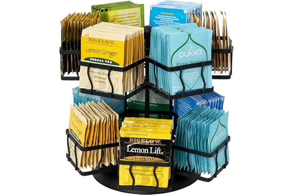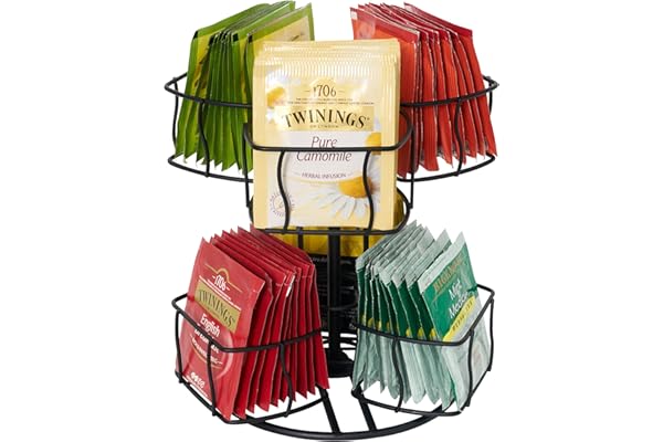 Tea Bag Storage Holder Spinning Carousel 96 Teabags Container Lazy Susan Coffee Creamer Sweetener Tea Caddy for Kitchen Counter Cabinet Pantry Shelf Organizer