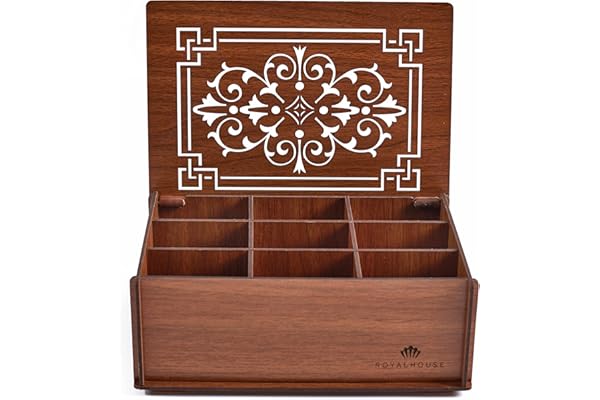 ROYALHOUSE Premium Wood (MDF) Tea Box Storage Organizer (Brown)