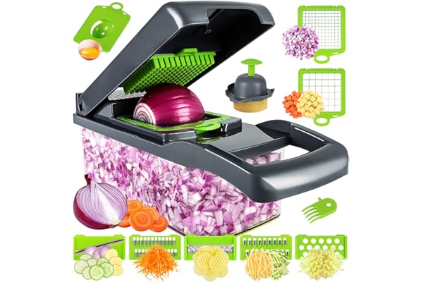 Pro Onion Chopper, Multifunctional 13 in 1 Food Chopper, Kitchen Vegetable Slicer Dicer Cutter,Veggie Chopper With 8 Blades,Carrot and Garlic Chopper With Container…