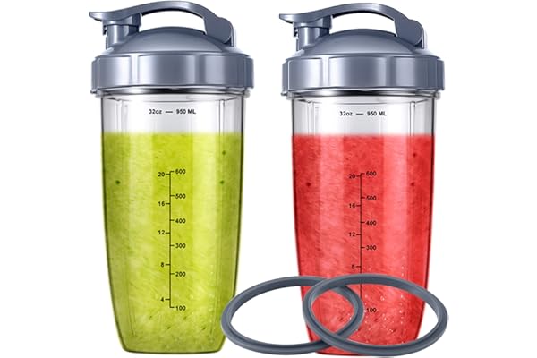 2-pack Replacement Parts Upgrade 32oz Cups with Flip-Top To-Go-Lid and Rubber Gaskets Compatible with NutriBullet 600w/900w Blender Accessory