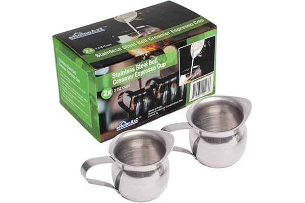eHomeA2Z Stainless Steel Bell Creamer Espresso Shot Frothing Pitcher Cup Latte Art (2, 3 Oz)