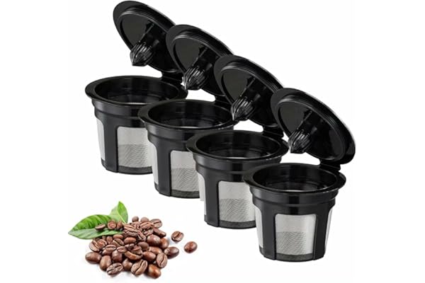 4 Pack Universal Fit Reusable Coffee Filters with Food Grade Stainless Steel Mesh Eco-Friendly Coffee Reusable Pods for Keurig 1.0 and 2.0 Brewers (Black)