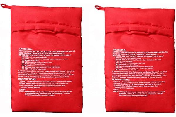 2 Pack of Reusable Microwave Cooker Bag Baked Pouch Potato Bag, Red