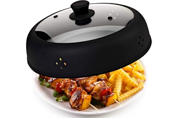 Bezrat Vented Glass Microwave Plate Cover |Microwave Cover For Food Silicone with Glass | 100% Food Grade |Anti-Splatter Lid Dishwasher Safe for Plates & Bowls 11.8" (Black)