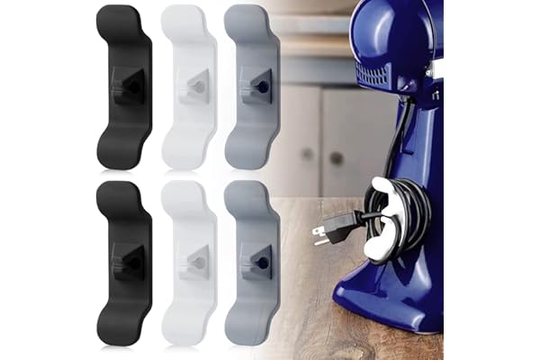 Kitchen Appliance Cord Organizer Stick On, Power Cord Wrapper Winder Holder for Appliance, Adhesive Cord Keeper for Blenders Mixer, Coffee Maker, Air Fryers, 6 Packs