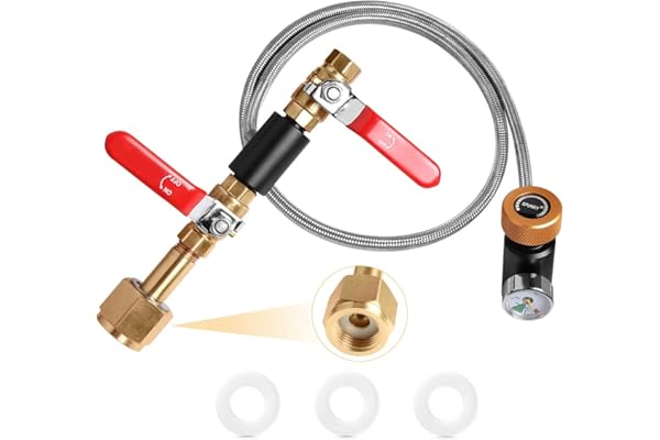 CO2 Refill Adapter Fill Station Connector Kit,For Soda Maker Filling for Tank Bottle,36 Inch Hose Dual Valve with Gauge…