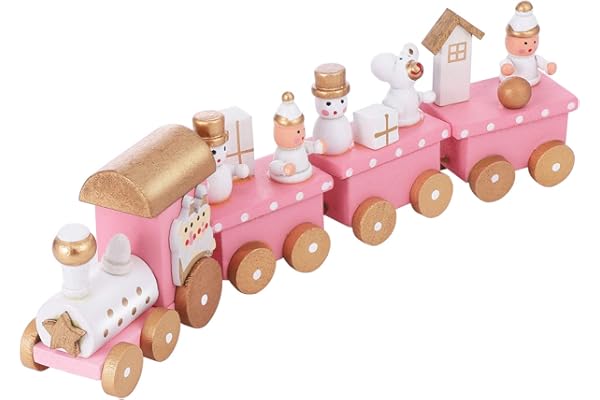 NUOBESTY Christmas Wooden Train Rail Winter Wonderland Train Mini Train Decor Set for Christmas Party Under Christmas Tree Decorations Pink