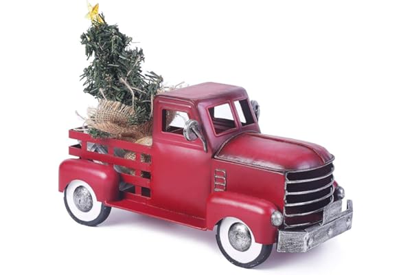 Pylemon Vintage Red Truck Christmas Decor with a Lit-up Removable Christmas Tree Wrapped Around by LED Lights String