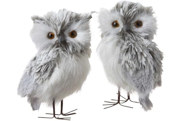 Kurt Adler 5-Inch Furry Gray Owl Set of 2