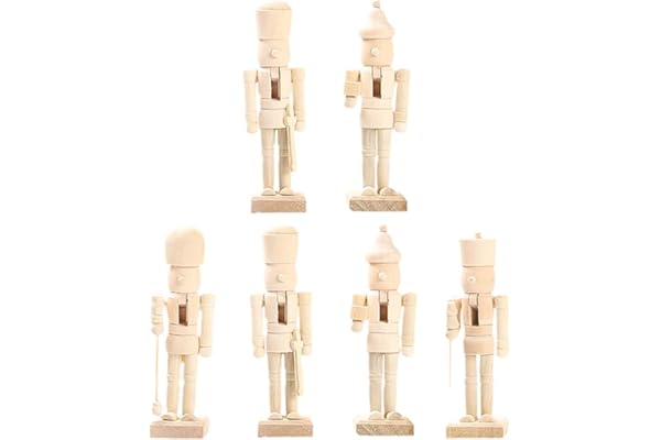 ABOOFAN 6Pcs Christmas Wooden Unfinished Nutcracker Figurines DIY Blank Unpainted Nutcracker Puppet Walnut Soldier Ornament Decoration