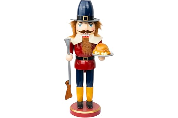 Wooden Soldier Nutcracker Figures Hold Turkey, Collectible Ornament for Table Desktop Fireplace Fall Home Thanksgiving Decor