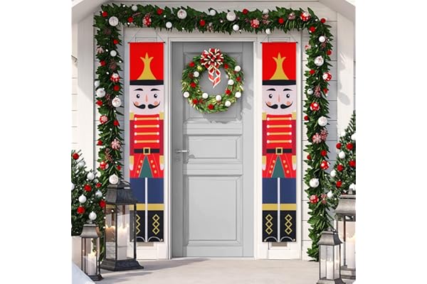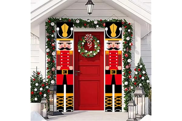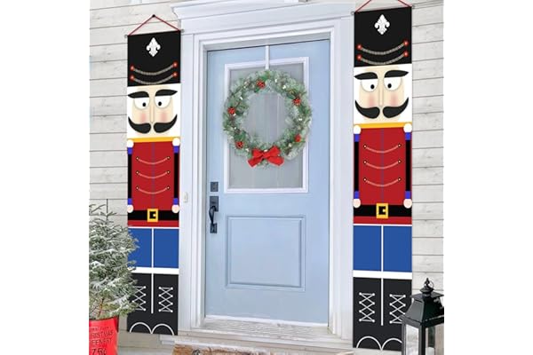 Outdoor Xmas Decor - Life Size Soldier Model Nutcracker Banners for Front Door Porch Garden Indoor Exterior Kids Party