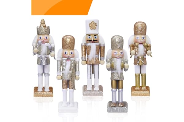 Jolik Christmas Nutcracker Ornament Set-Gold and Silver Glittered Christmas Soldier