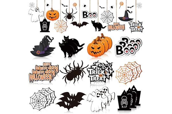 36 Pieces Halloween Wooden Hanging Ornaments Wood Halloween Cutouts with Ropes Halloween Tree Decorations for Halloween Trick or Treat Party Supplies (Ghost Style)