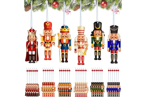 36 Pieces Christmas Nutcrackers Decorations Wooden Holiday Hanging Decorations Christmas Party Decorations King Soldier Nutcracker Figures Nutcracker Ornaments for Xmas Tree Birthday (Mighty Style)