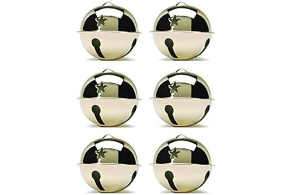 Charmed Large Size Christmas Star Cutout Jingle Bell Ornament 3" Pack of 6 (Gold)