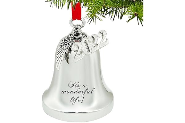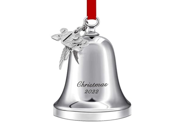 JUPPE Silver Engraved It's A Wonderful Life Christmas Bell Ornaments for Christmas Tree Wedding Anniversary Decoration Pendants with Angel Wings & 2022 Charm
