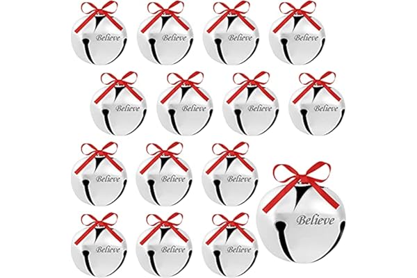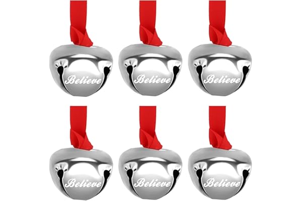 1.6 Inch Believe Bells Ornament Sleigh Bells Christmas Tree Bells Polar Express Bells Xmas Ribbons Bells Christmas Holiday Decorations for DIY Holiday Craft Home Christmas Wedding(Silver,30)