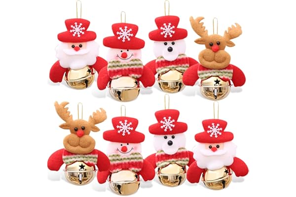 WUJOMZ Jingle Bells Christmas Tree Ornaments Set of 8
