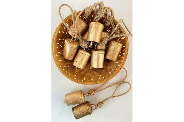 Carfar Handicrafts Set of 10 Vintage Rustic Tin Bells Wall Hanging Décor 6cm Big Bells On Jute Rope Cylinder Shape