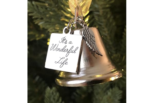 It's a Wonderful Life Inspired Christmas Angel Bell Ornament with Stainless Steel Angel Wing Charm