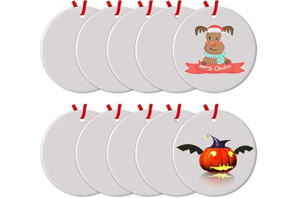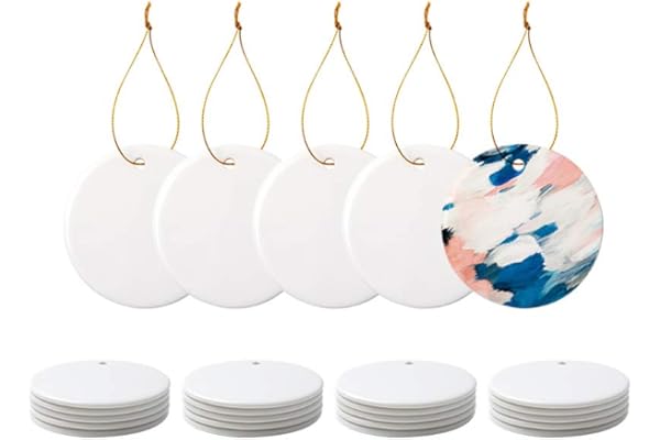 10Pcs Sublimation Ornaments Blanks Round White Blank Ceramic Ornament for Sublimation Personalized 2022 Christmas Ornament Bulk Circle Porcelain Blank Ornaments for Heat Transfer Print DIY Craft Gift