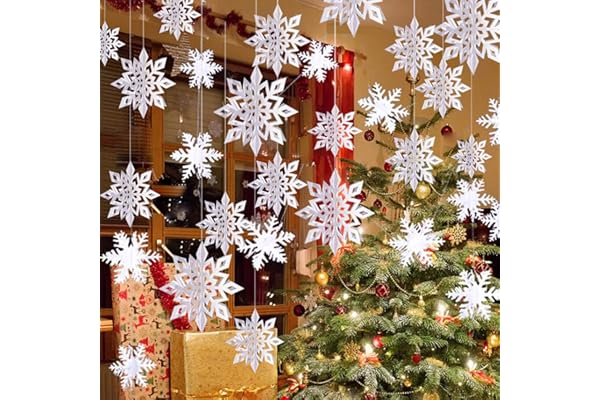 12PCS Snowflakes Garland & 12PCS 3D Glittery Large White Snowflake for Christmas Winter Wonderland Holiday New Year Party Home Decorations