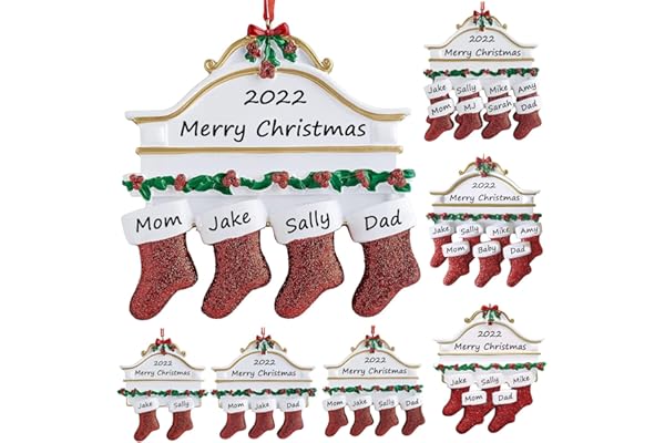 Personalized Christmas Ornaments 2022 Family of 2/3/4/5/6/7/8 Custom Christmas Stocking Ornament with Names Customized Family Ornaments for Christmas Tree