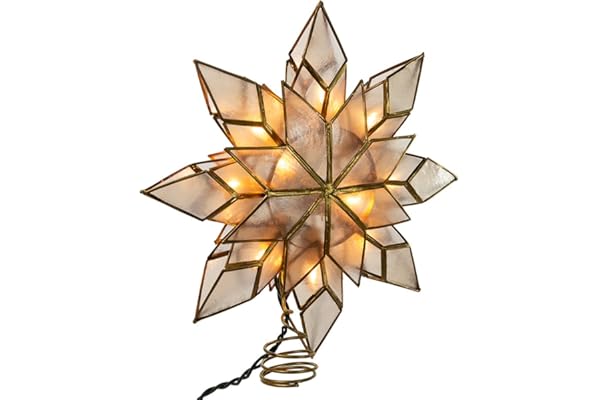 Kurt Adler 8.5-Inch Capiz Star Tree Topper with 10 Clear Lights and 1 Spare Bulb