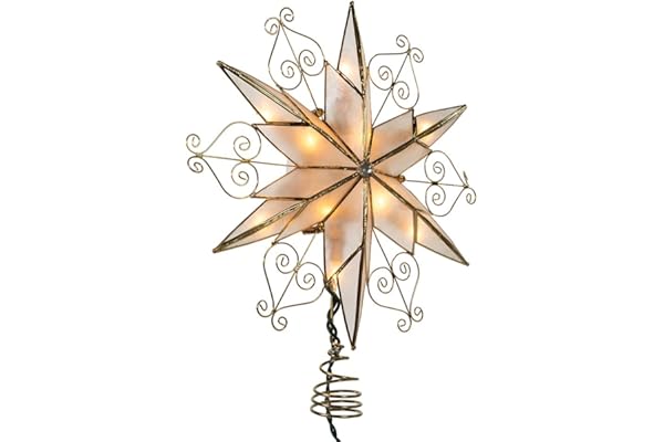 Kurt Adler 10-Light 6-Point Capiz Star Treetop with Scroll Design