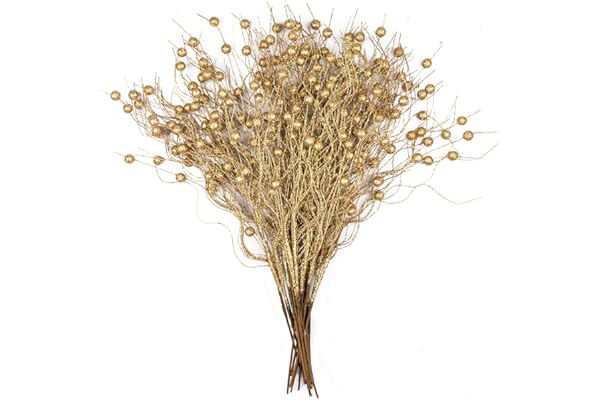 KI Store Gold Christmas Tree Picks Sprays Set of 20 Glittered Twigs Decor for Christmas Tree Decoration Wreath Garland Floral Arrangement