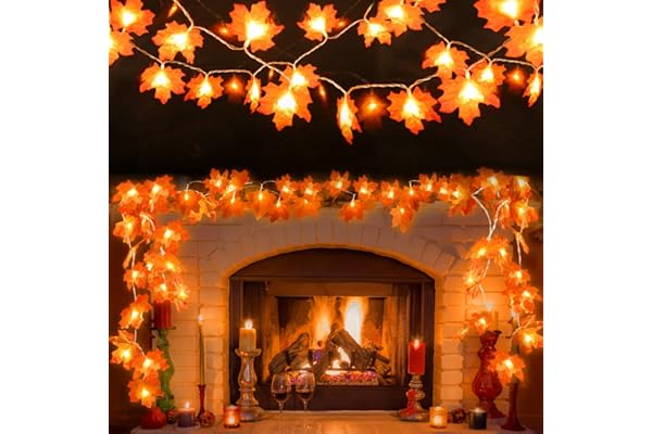 Total 16.4ft 40 LED, Fall Decorations Thanksgiving Halloween Decor Maple Leaves String Lights for Indoor Room Autumn Harvest