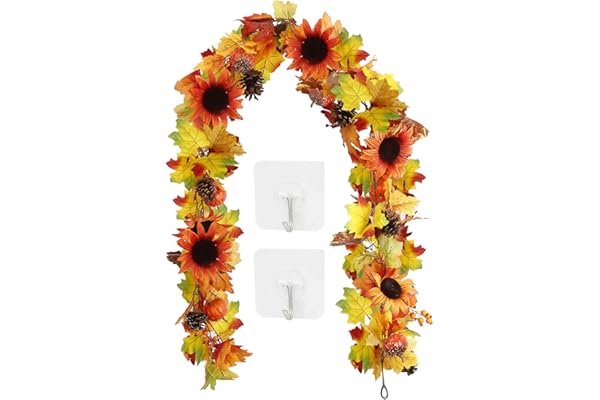 6.23FT Artificial Sunflower Pumpkin Halloween Garlands,Hanging Maple Foliage Vines with Hooks for Thanksgiving Halloween Decor (Orange-Sunflowers)