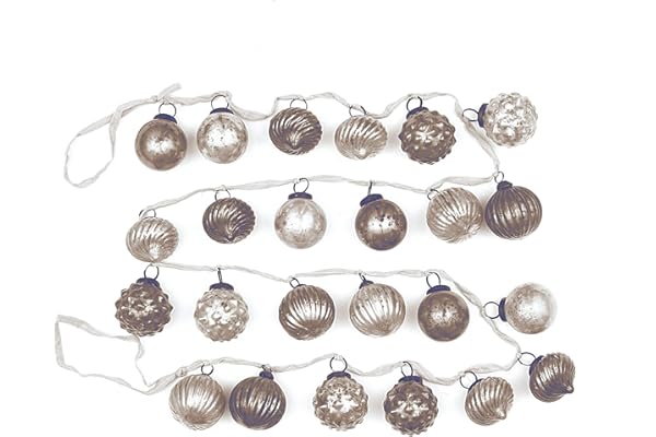 Creative Co-Op Distressed White & Grey Embossed Mercury Glass Ornament Fabric String Garland
