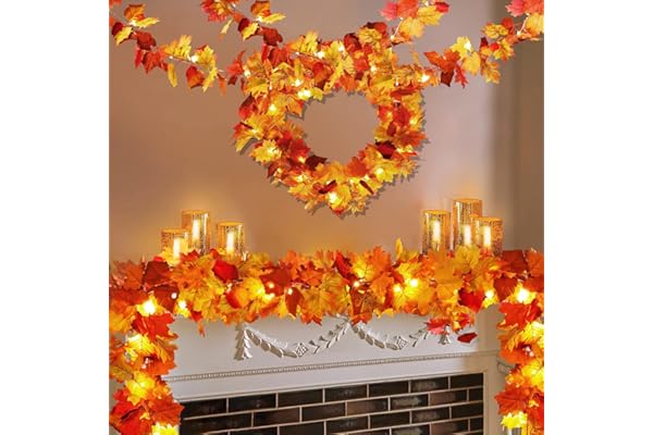 40 Led 16.4 FT Thanksgiving Decorations Lighted Fall Garland, Maple Leaves String Lights for Home Indoor Outdoor