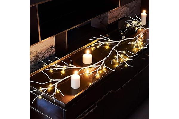 Hairui Birch Garland with Lights 6FT 48 LED Battery Operated