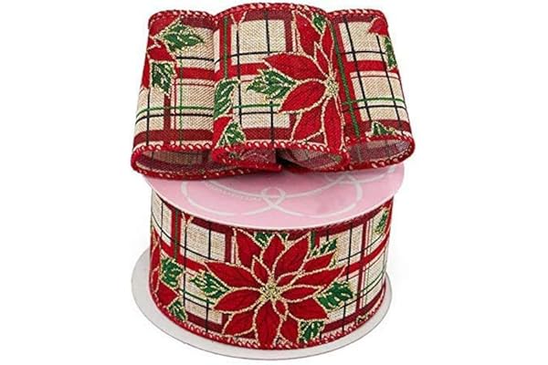 Poinsettia Plaid Christmas Tree Ribbon
