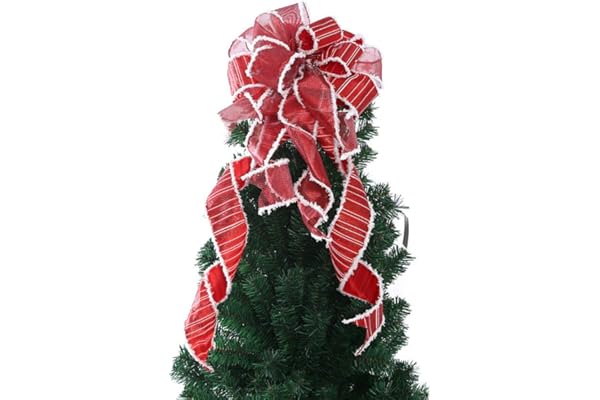 Christmas Wreath Bow Large Red Christmas Bow Tree Topper,Burlap with White Polyester Edge Gift Bow for Christmas Wedding Party Holiday Home Indoor Outdoor Decoration